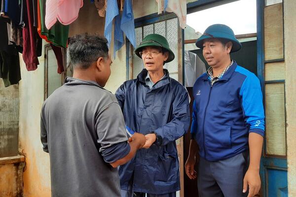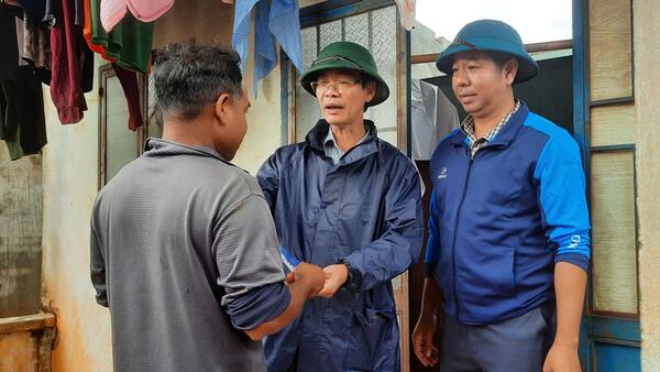 Các đồng chí lãnh đạo xã Ia Pia đến thăm hỏi, động viên các hộ dân bị thiệt hại do bão Kalmaegi (bão số 13) gây ra