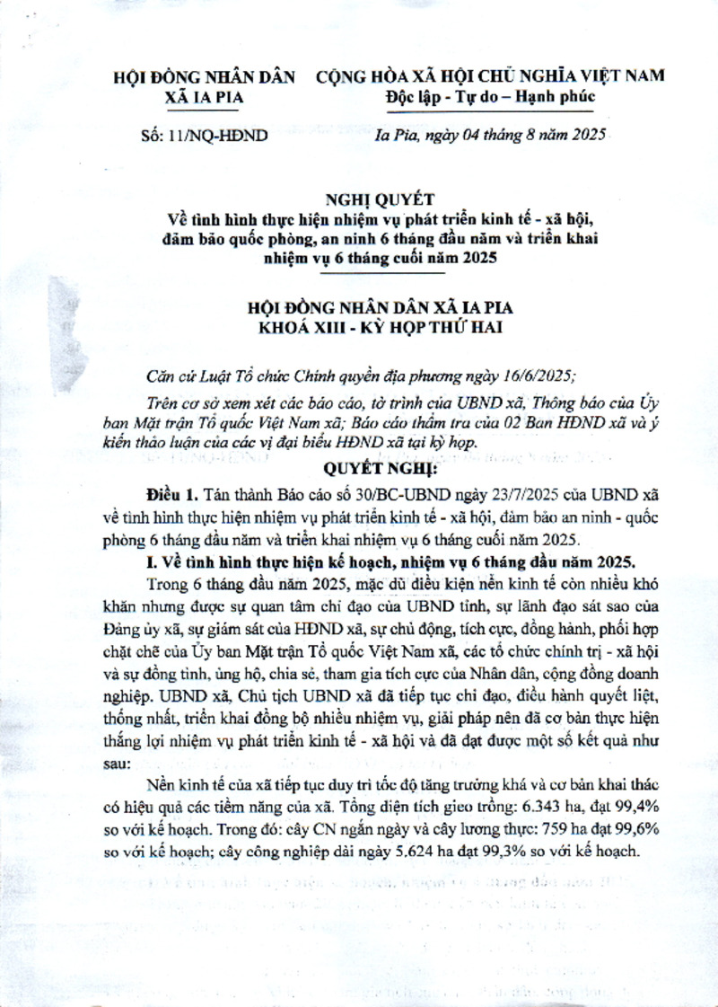 Nghị quyết về tình hình thực hiện nhiệm vụ phát triển kinh tế - xã hội, đảm bảo quốc phòng, an ninh 6 tháng đầu năm và triển khai nhiệm vụ 6 tháng cuối năm 2025