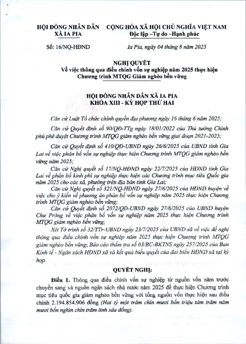 Nghị quyết về việc thông qua điều chỉnh vốn sự nghiệp năm 2025 thực hiện Chương trình MTQG Giảm nghèo bền vững 10/08/2025, 15:28:52 - Lượt xem: 0 Tweet Thêm vào danh sách Báo xấu Thông tin tài liệu Nghị quyết về việc thông qua điều chỉnh vốn sự nghiệp năm 2025 thực hiện Chương trình MTQG Giảm nghèo bền vững